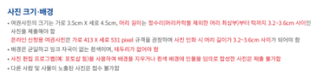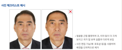 자신이 직접 사진을 찍어야 하는 경우, 반드시 규격을 사전에 확인하고 촬영하는 것이 중요합니다.