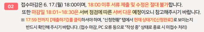 신청 기간이 지나면 접수가 불가능하기 때문에, 사전에 준비를 철저히 해야 합니다.