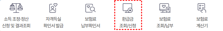 환급금조회/신청 조회하시면 신청 가능한 환급내역을 보실 수 있습니다.