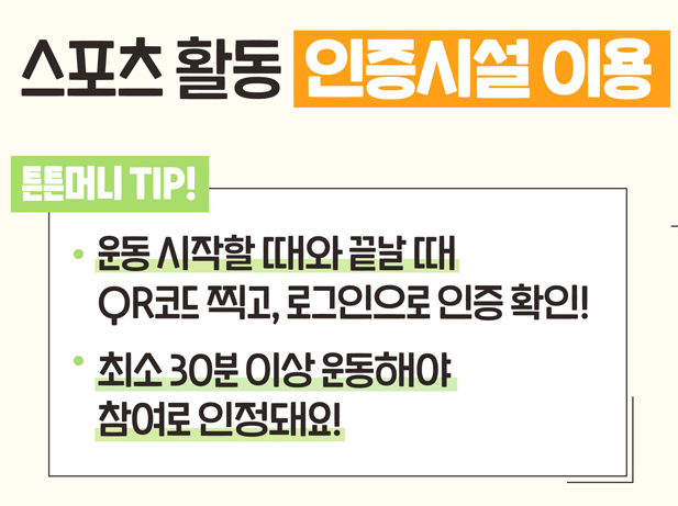 체력관리 인프라 확충 지역사회 내 체력단련 시설 확충 및 접근성을 높여 국민들이 일상에서 체력 관리를 실천할 수 있도록 지원합니다.