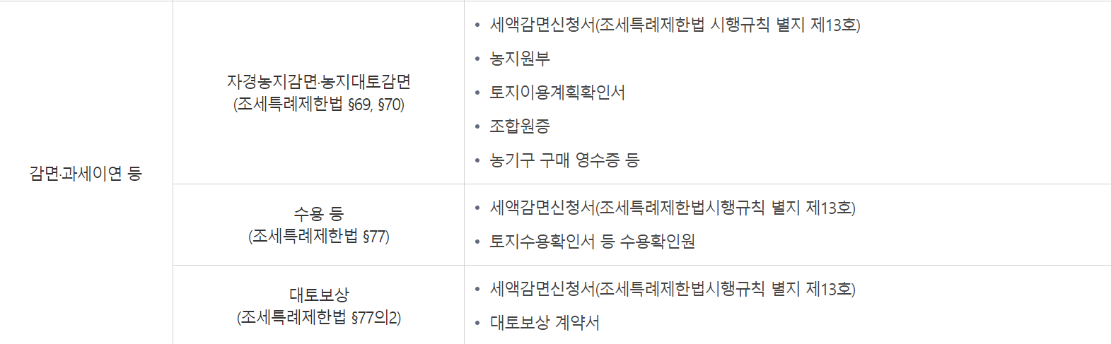 신고서별 추가 제출증빙 서류가 있으니 참고하시기 바랍니다.
