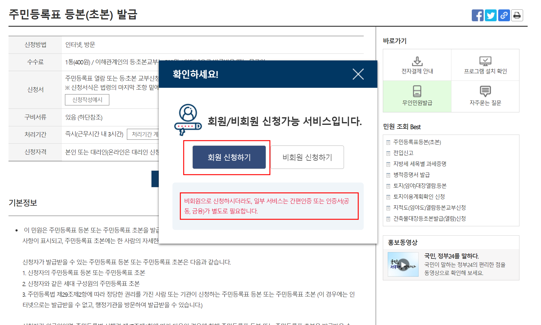 비회원으로 주민등록등본 인터넷발급받기