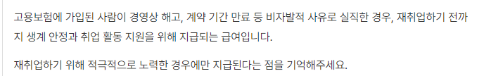 실업급여를 받을 수 있는 조건이 있으니 확인이 필요합니다.