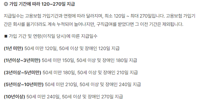 실업급여를 받을 수 있는 금액과 기간은 개인의 근로 기간과 급여 수준에 따라 다릅니다.